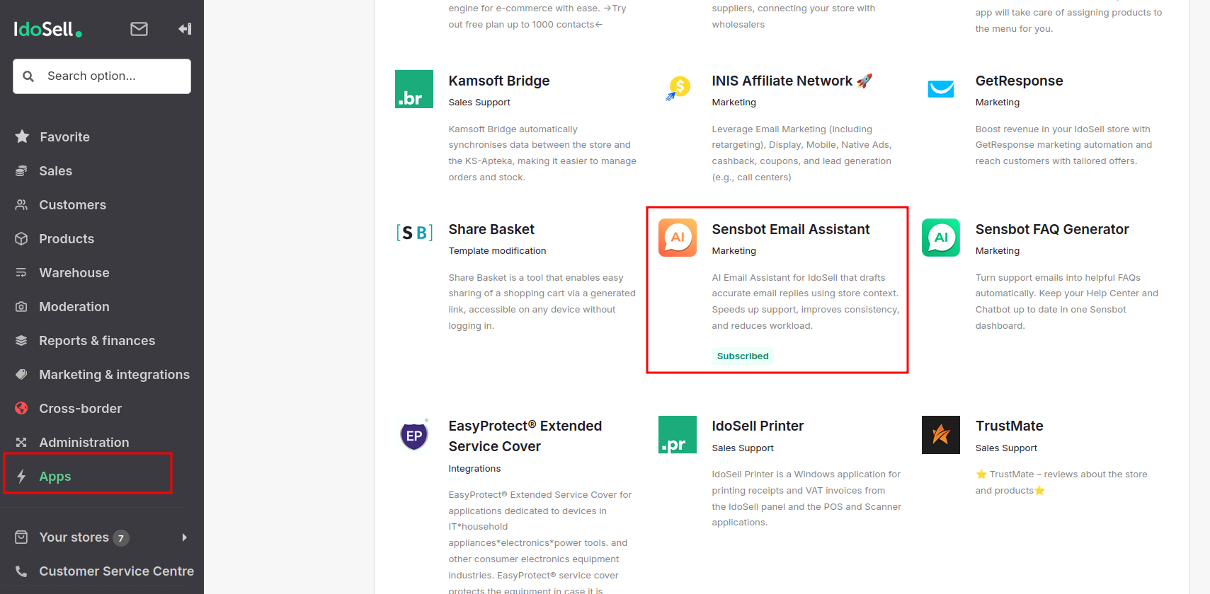 Bring intelligent AI-powered email assistance to your IdoSell store with the Sensbot Email Assistant. Follow these steps to install and configure it.