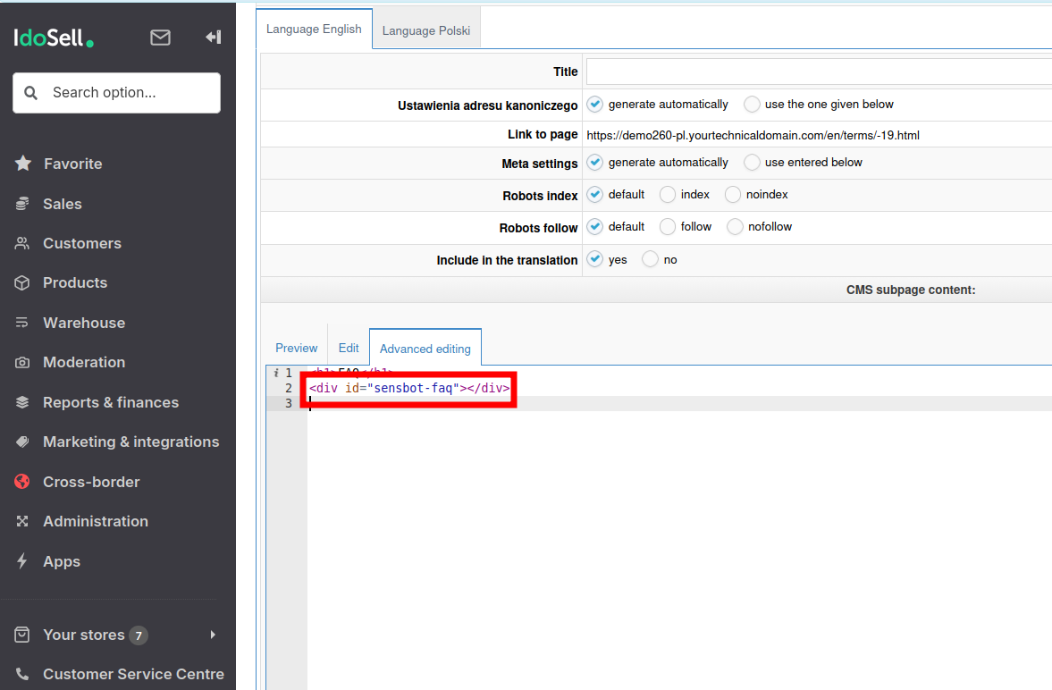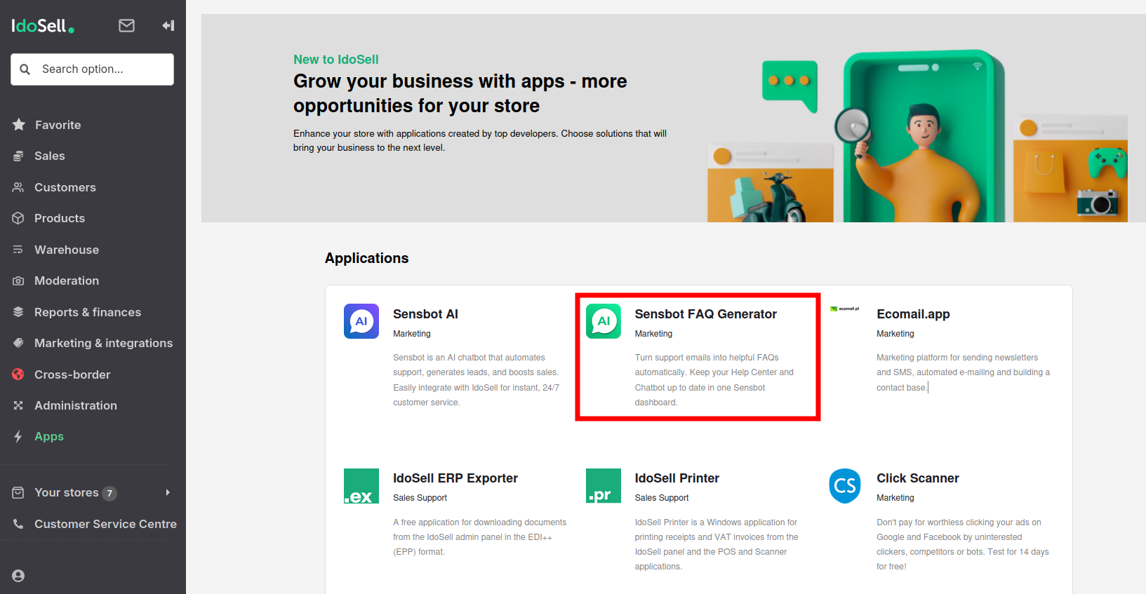 Bring intelligent AI-powered FAQ to your IdoSell store with the Sensbot FAQ Generator. Follow these steps to install and configure it.✅ Step 1: Install Sensbot from the Apps Section