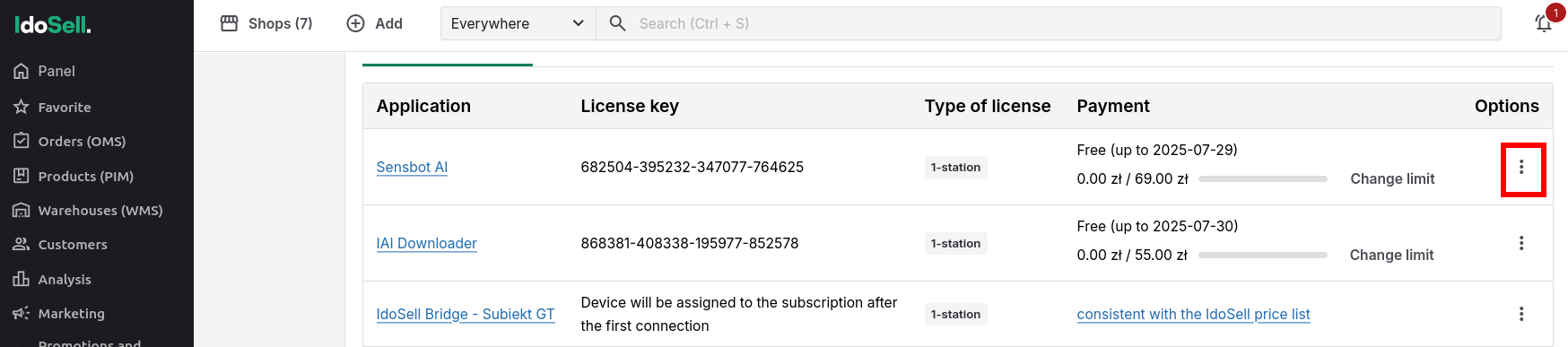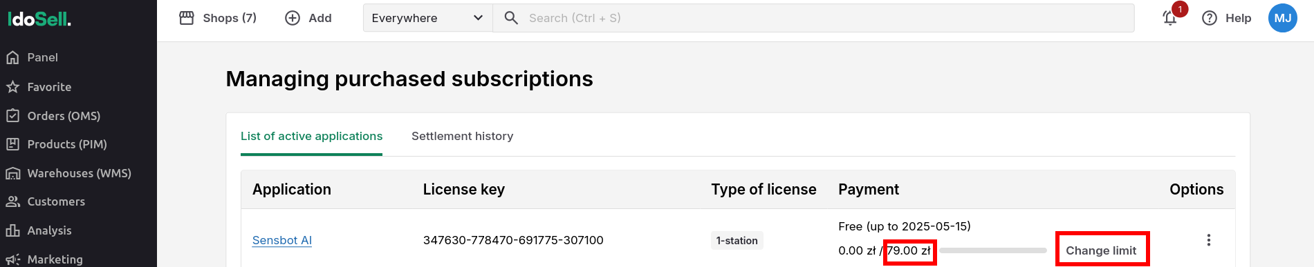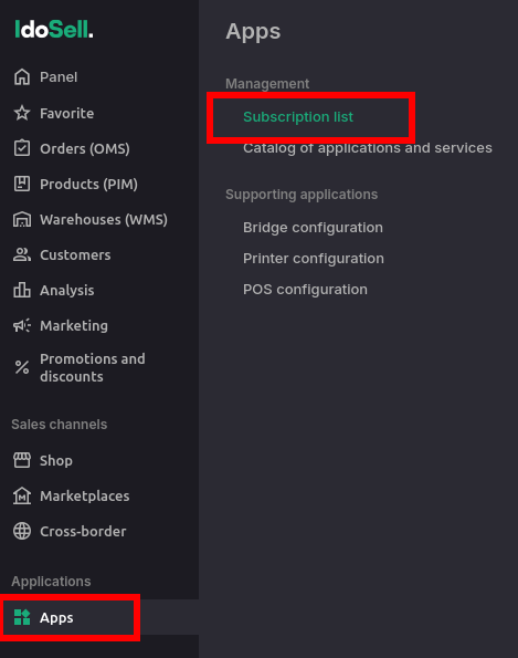 - In your IdoSell admin panel, go to Apps → Subscriptions list.